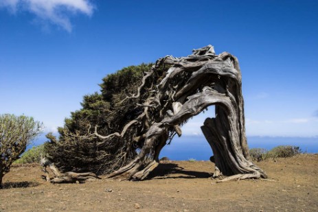 Zu den Wahrzeichen von El Hierro gehört El Sabinar - der wohl ungewöhnlichste Wacholderbaumhain der Welt. Der starke Wind hat die Bäume so sehr bebeugt, dass sie nicht mehr in die Höhe wachsen.